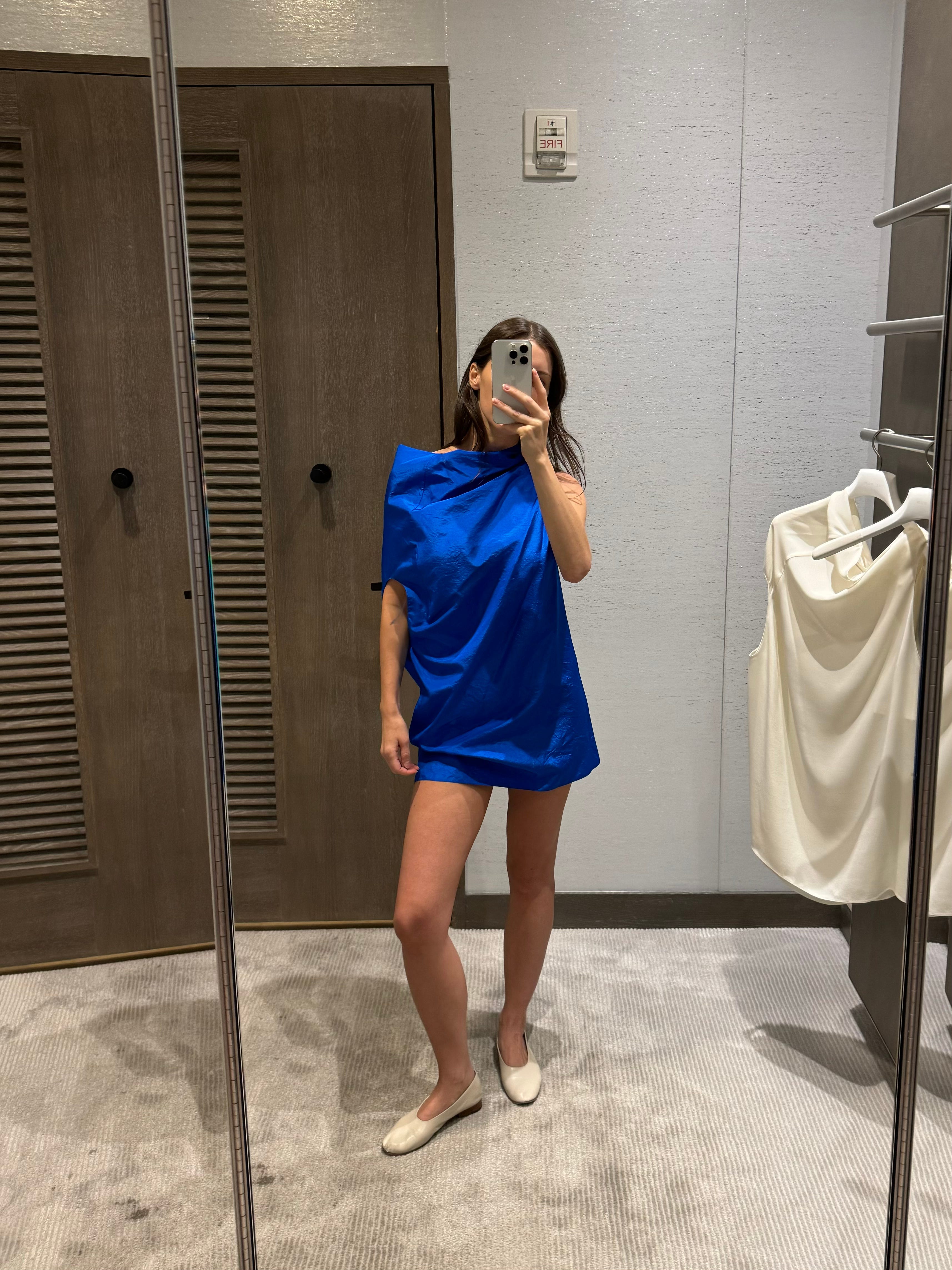 I discovered something important in the dressing room at Saks…This silk taffeta The Row top, which is totally sculptural and enigmatic and inviting of build-your-own-adventure styling, can in that spirit become a galaxy-brain mini dress where smarts and hots collide. I also tried on the white version in a slinkier silk, worn best as a top, the vibe being more “powerful smokeshow attends a fundraiser dinner.” This twofer has given me a lot to think about.