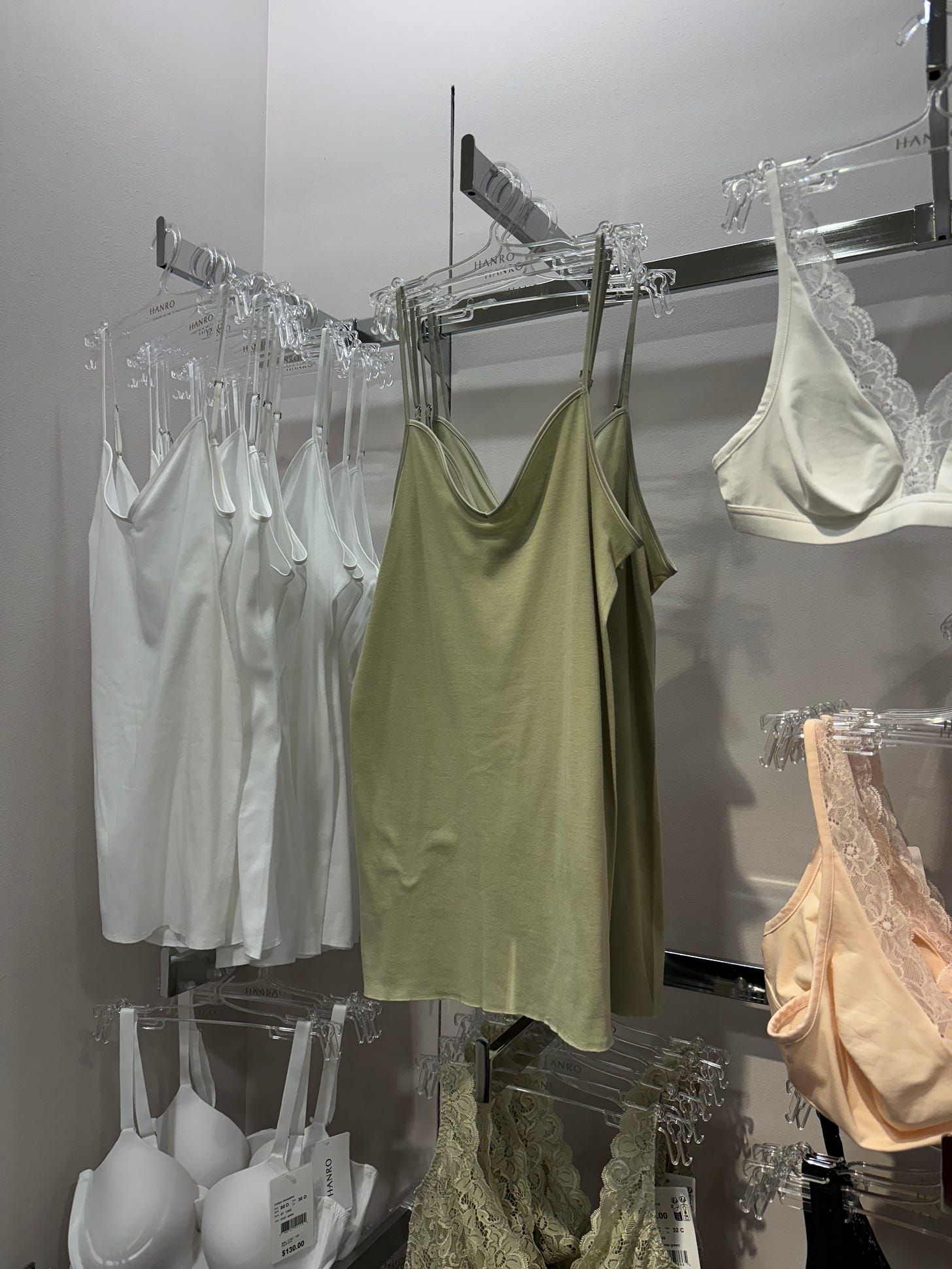The best finds are always hiding in the lingerie department. Beyond the lacy bras and fantasy corsetry (love and love), I always run into those louchely minimal pieces that’d be great centerpieces in a peak summer wardrobe or luxuriating under fall knits. Hanro is basically the Swiss equivalent of the collectible Oscalito tanks I brought back from Italy, as with this pistachio camisole (such a J.Hannah color, no?) or this bra-friendly lace-trimmed vest.