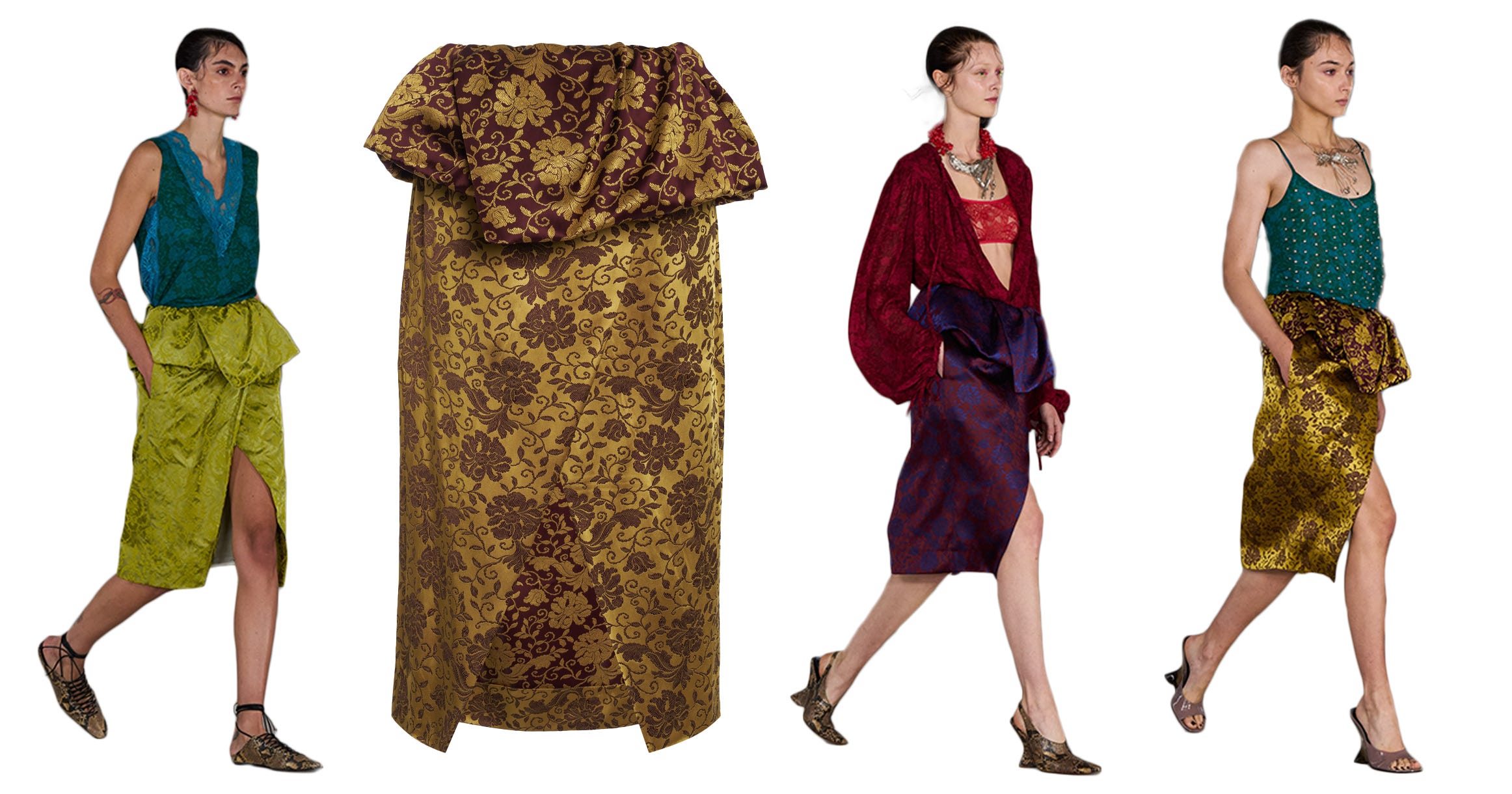 An homage collection from the atelier that pulled from codes Dries himself developed over nearly four decades. I would never have thought a puffy peplum skirt could look low-effort (in a way to strive for). Its slouchy waist and hip pocket have a kind of throw-it-away insouciance that make putting on a colorful silk jacquard less daunting.