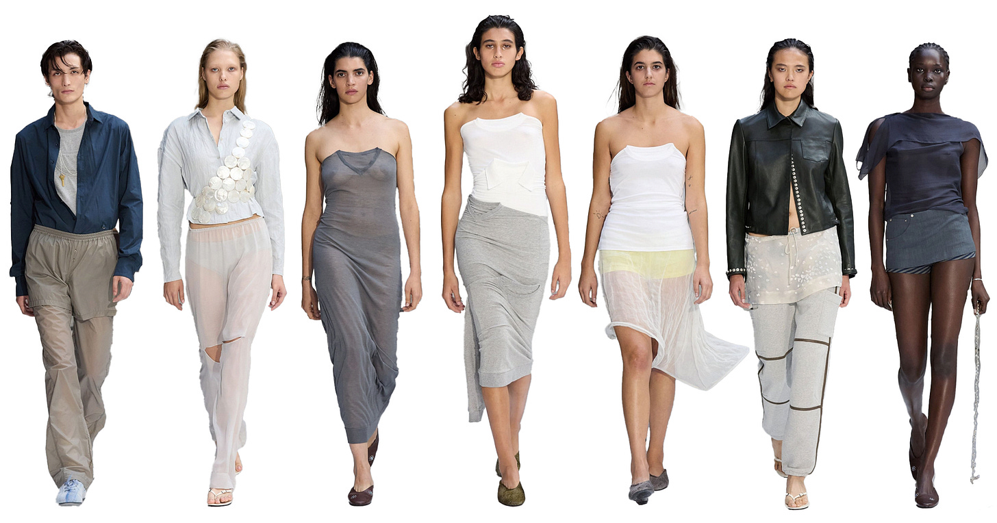 The star pieces from the week came from blockbuster houses (the Hermeses of the world), small and impactful operations like Niccolo Pasqualetti and Uma Wang, and everything in between—which, I’m learning, includes not-as-big-in-Europe-yet The Row (their store opening should change that).