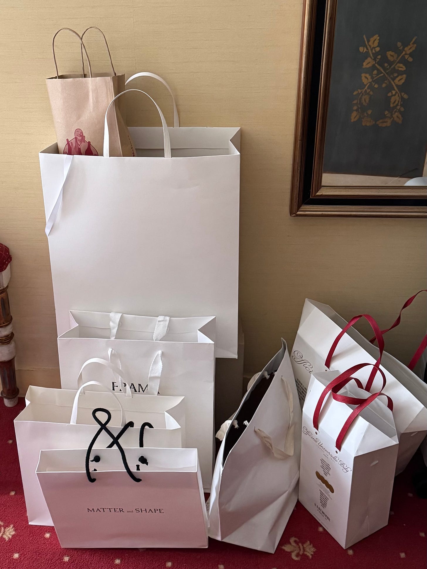 An emergency suitcase from Monoprix because of all the wine we’re bringing back