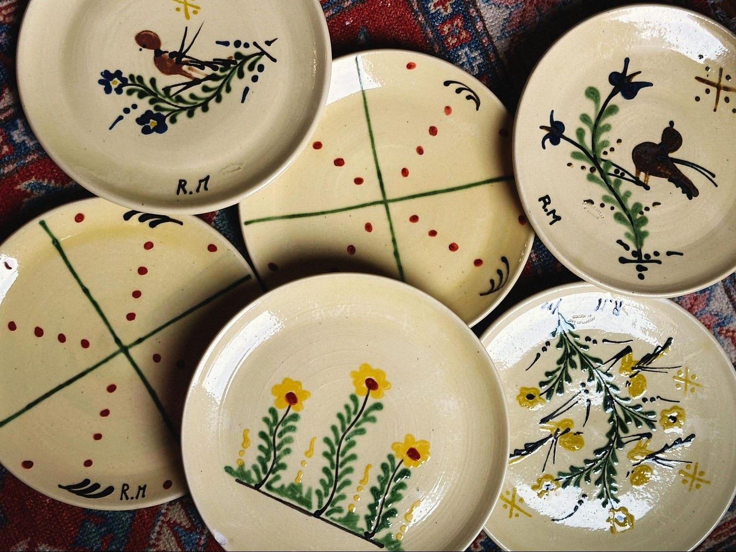 I just got back from a ski trip in France, where in Les 3 Vallées, I stayed at the most fabulous hotel called La Bouitte. I will write properly about it later, but I bought a set of their fabulous hand-painted Savoyard plates (I chose used ones from the restaurant for a discount—they all have little chips but I don’t mind). I found similar and very beautiful ones on Abask.