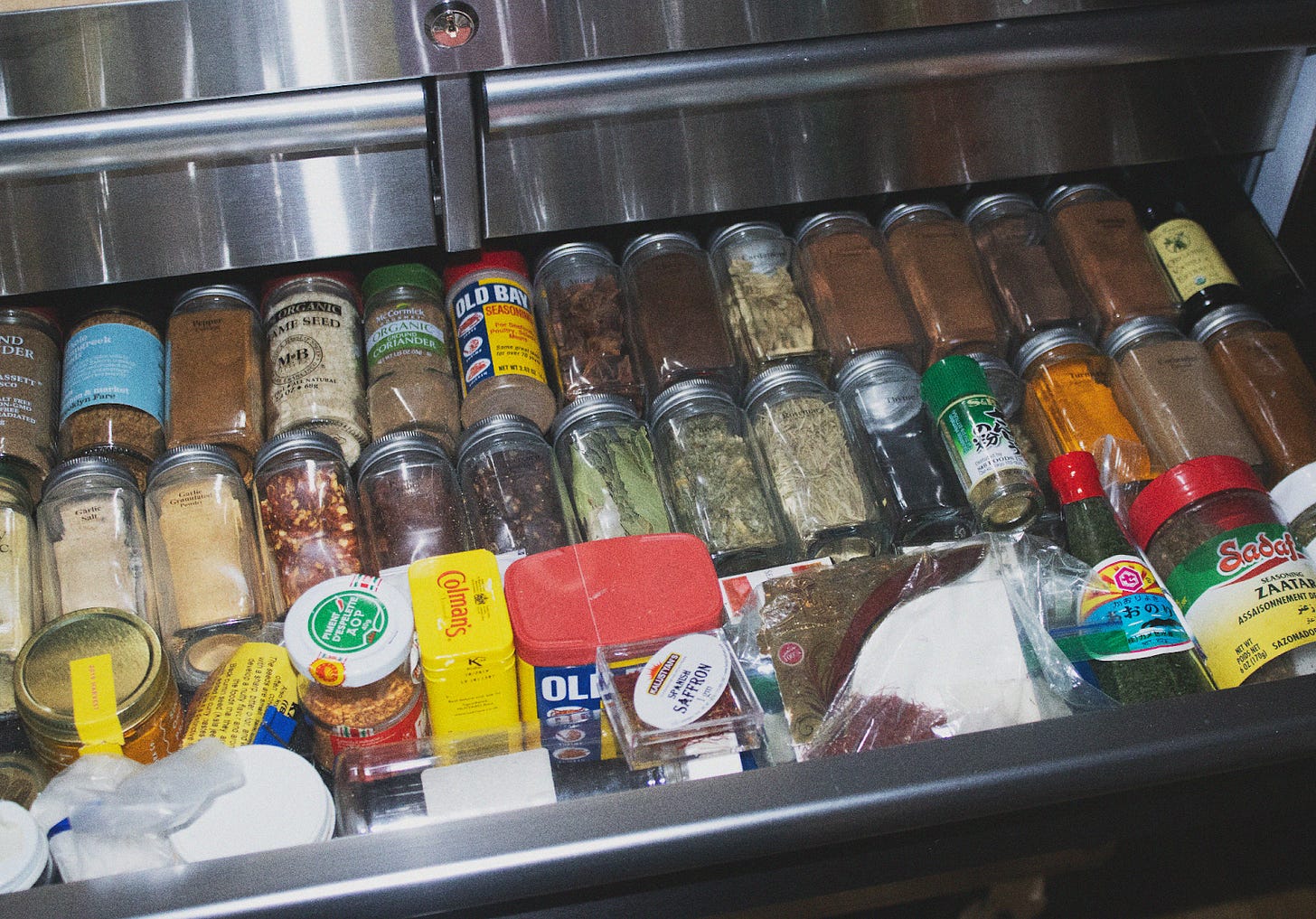 A constant reference of mine over the years has been Donald Judd’s Mercer St. kitchen, which is a beautifully unstuffy and to-the-point composition of commercial equipment and perfectly sized custom wooden shelving that plays home to the artist’s collection of dishware and cookware. I think DJ would approve of my recent kitchen island purchase, which is a long but narrow stainless steel workbench that I got at tractorsupply.com, which is truly an organizational dream.