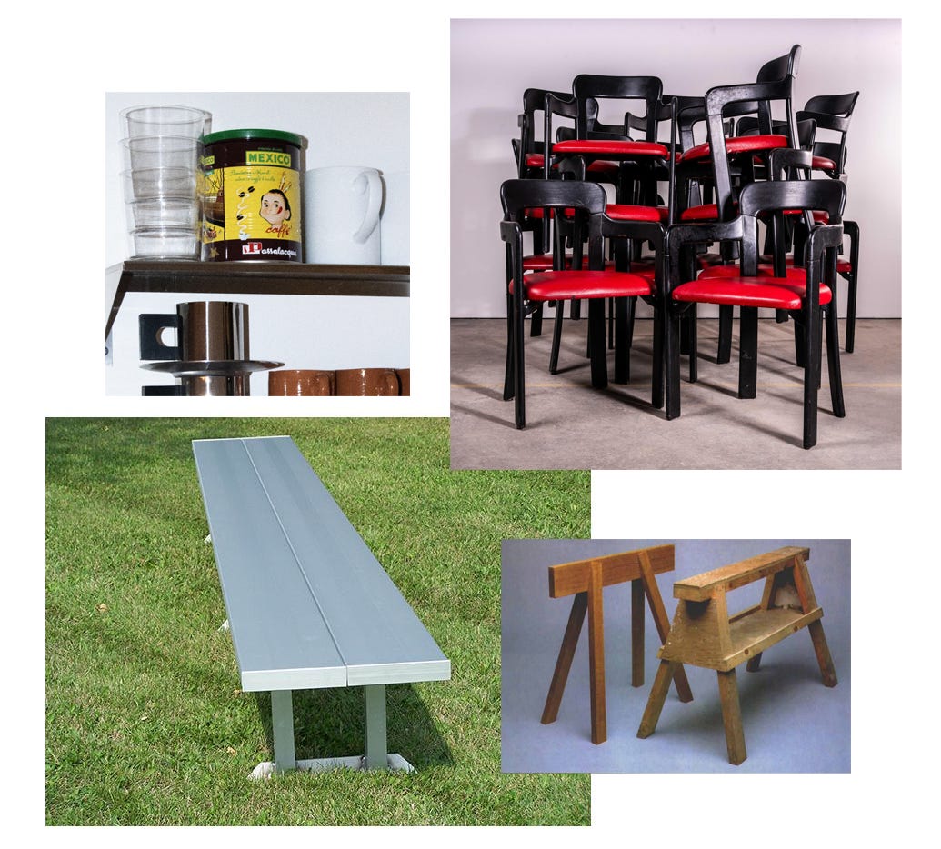 Going the vintage route is always a good idea: Keep your eyes peeled for pairs of patinated sawhorses for a dining table, for example. When working on restaurant projects, I often look for lots of old French school furniture, particularly from the manufacturer Mullca. A recent search turned up this elegant long bench and this large lot of red and white stacking chairs. (I almost hate to give away this intel, but for large lots of vintage institutional furniture, Merchant & Found is an amazing source in the UK that will ship.)