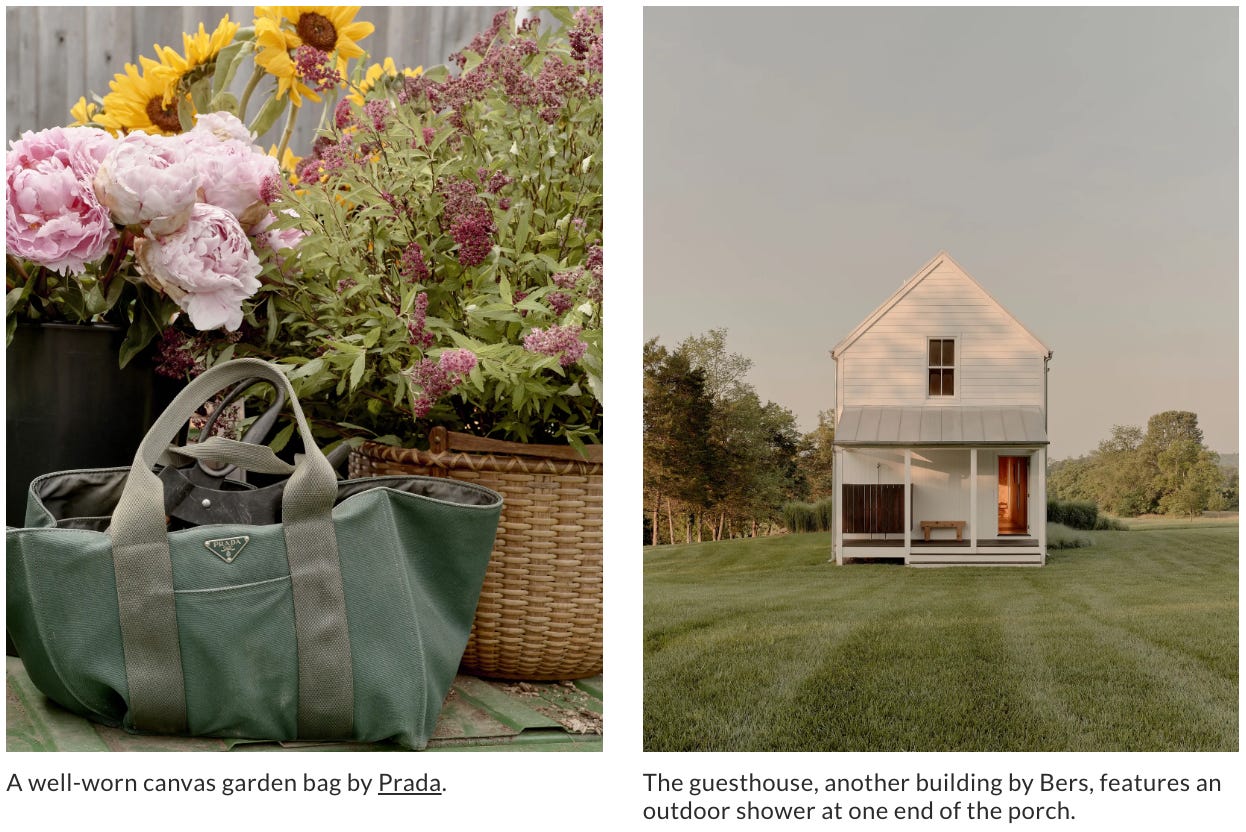 Cathy Horyn is living out everyone’s dream out at her new place in Virginia, but her use of an old Prada duffle as a gardening/log lugging bag is inspired. Here’s one, two, three, and four similar on resale.