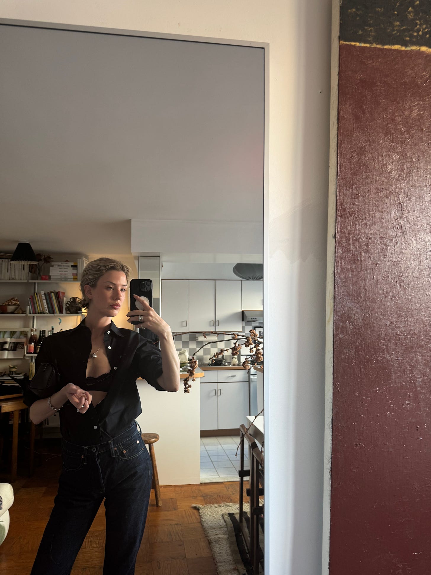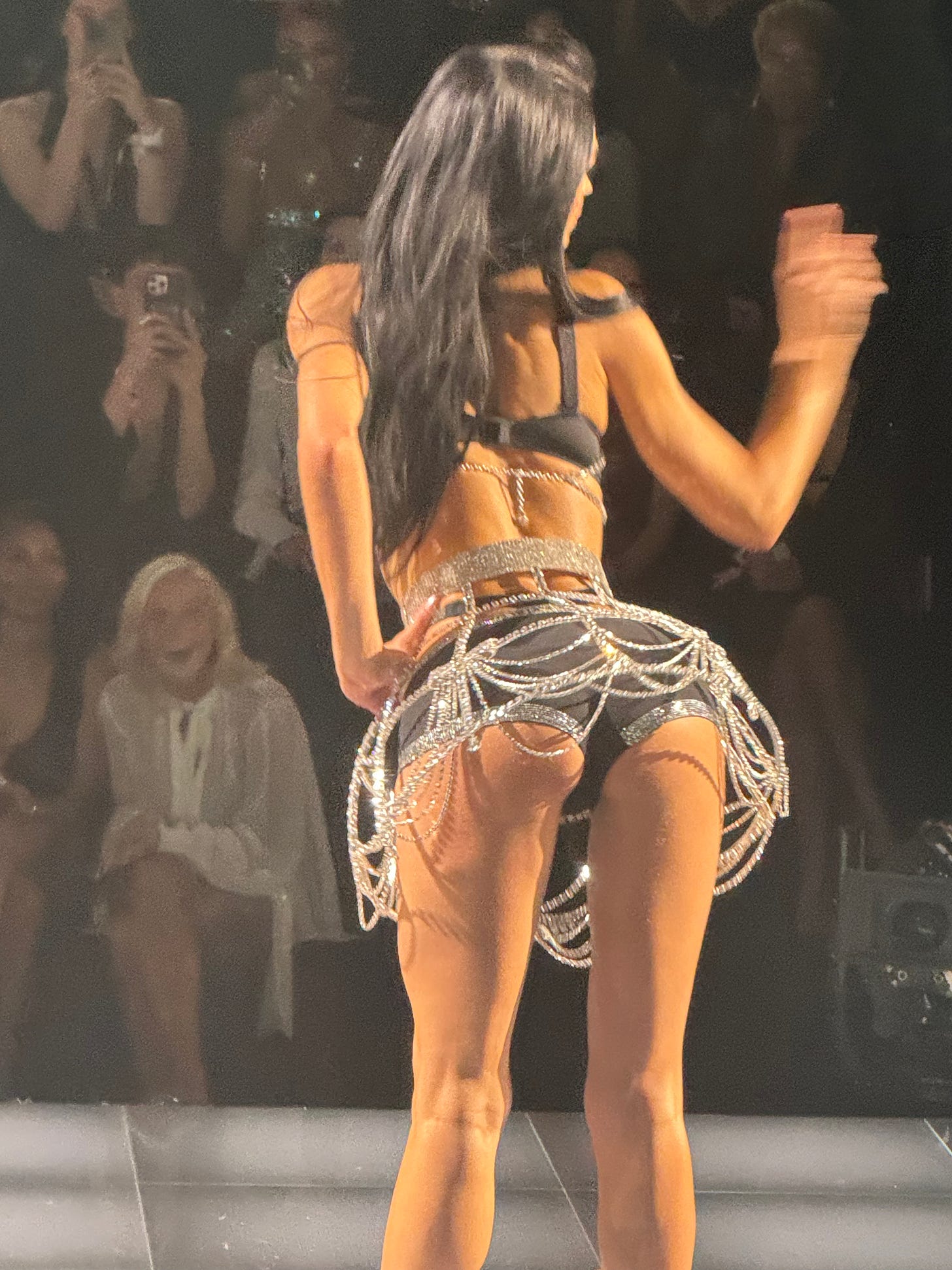 The evening started out with me texting the Throwing Fits dinner girls group chat “What does one wear to a Victoria’s Secret show”… We (Emily) ended up with a crisp button down JEFF by yours truly in solid black and a lace bra—‘cause it was a lingerie slumber party after all. (I have no excuse for this Nosferatu claw hand.)