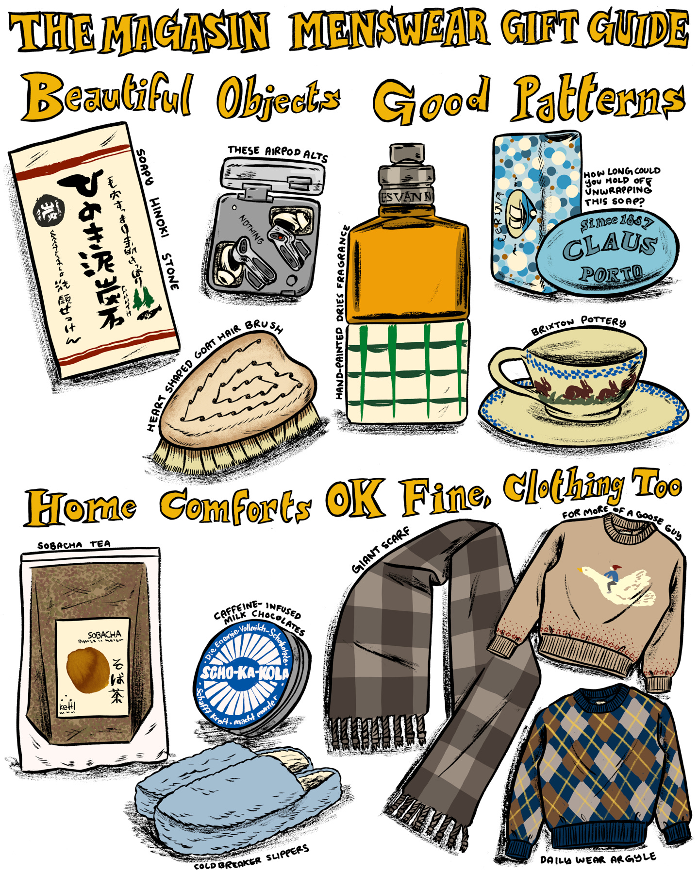 I began drafting this list of gifts with one guiding principle in mind: The picks should be delightful, but never at the expense of being well-made. But then, about 30 selections in, I was hit by another, stronger feeling: Damn, I guess this is what my own holiday store would look like. I am now intrigued to see whether you’d sell the place out. I’ve grouped my picks by four categories, with special thanks to Dick Carroll, an illustrator I’ve loved for years, who brought many of my picks to life.