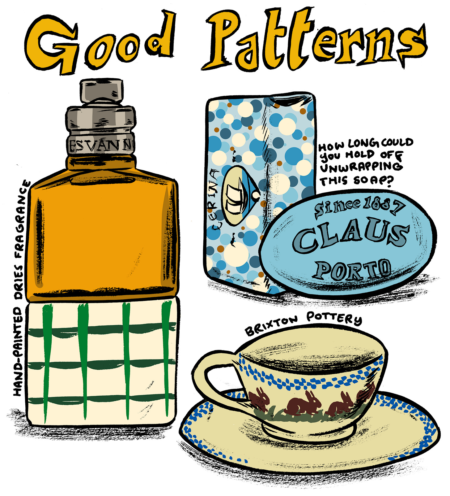 Emma Bridgewater mugs and plates are classic gifts on my side of the Atlantic. (Drink this soba cha in that mug!)
