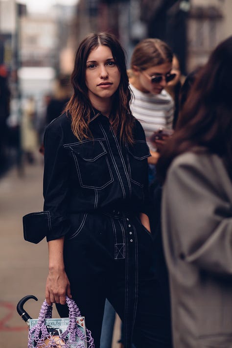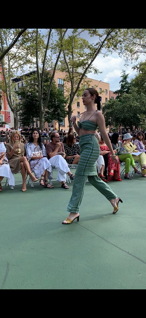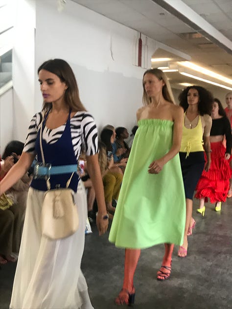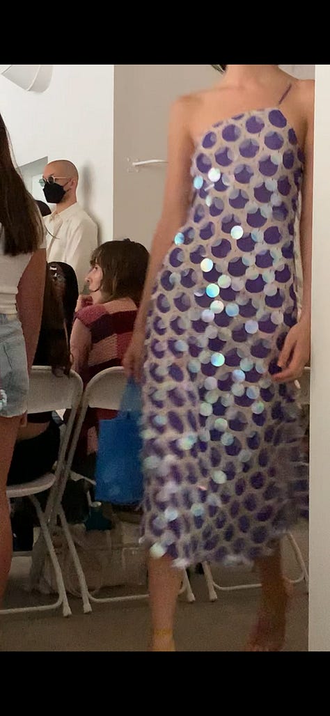 It was so forceful, the MNZ aura. When I think about it now, I remember the shows—the one in the Guggenheim way back when, 2017. All those pastel girls filing on stage. The one in the park that I kind of snuck into. Almost none of that was even shoppable, just lace things Maryam had brought back from her travels. Had anyone ever done that before, or will they ever? Unlikely. It was incredible. I dressed in lace bits and bikini tops all summer. I remember the show in the old bank (?) on Canal St, where models rode the escalator and I wore a whole boiler suit and was sweating so much. The one at the store where everyone got a free scrunchie and I saw the dress I wanted to get married in some day but they never put it into production. I was so young once! I was so shy and lost at how to hold myself in these scenes I couldn’t believe I got to be present at, even though I was (mostly) invited. Like, the desire to be what the MNZ girl was and have what she had creatively, energetically was so overwhelming it felt godlike, scary to see close up.