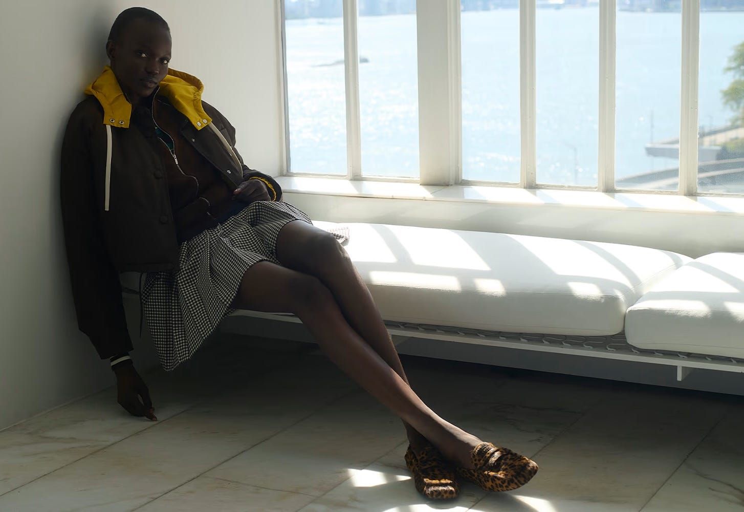 Prelude, Miu Miu’s latest micro-collection, reads like a fashion-forward Farmer’s Almanac forecast: a tight lineup of functional-leaning pieces for a wet East Coast winter. Think durable lace-up booties, gabardine outerwear with a cozy patterned lining, and technical fabric separates with a sportif undertone.