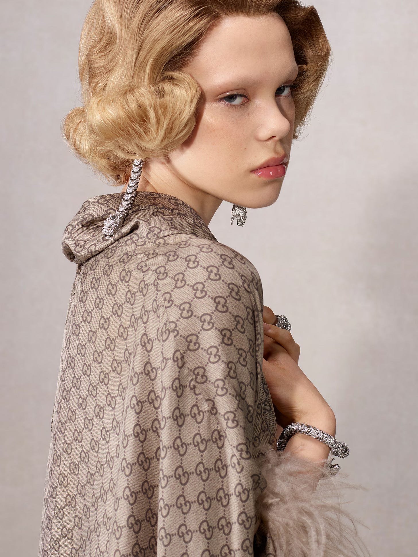 Welcome to La Famiglia, aka Demna’s Gucci. Previewed last summer, when a selection of inaugural runway pieces were made available in Gucci flagships around the world, those first looks are now available to all online. The thesis feels…familiar, as much as familial. The casting-driven, everyone-on-the-escalator energy recalls Vetements FW17-18, a collection that really solidified his name in the fashion industry, now filtered through Gucci codes. Accessories are doing the heavy lifting, as with the python Vittoria heels that suggest sharpness, equally in dress and attitude, plus Jackies and Bamboos reimagined in new proportions and weathered, live-in washes. If you came to ogle something, make it this $48,000 tiger-print shearling coat.