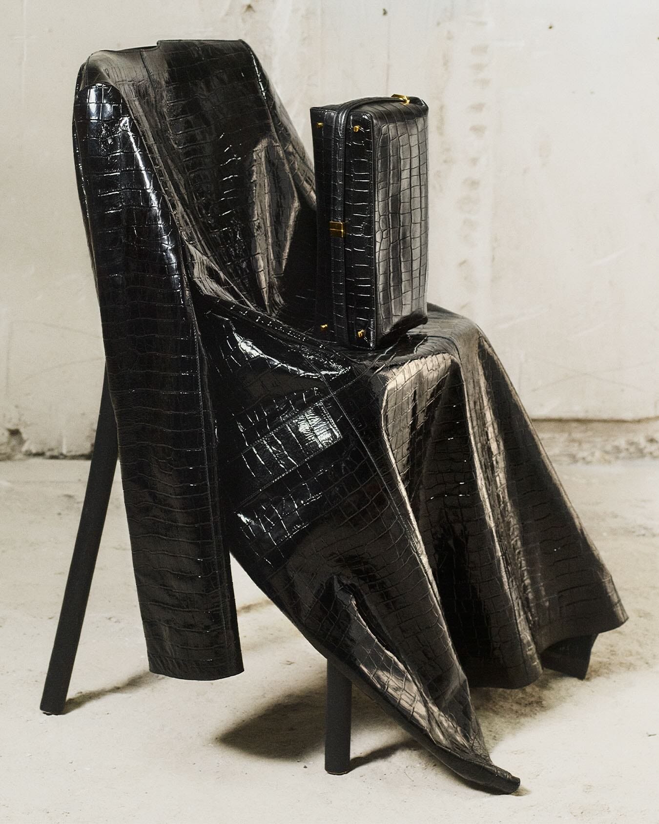 No face no case, but…for the self confidence of a logo-less luxury bag. Lemaire’s Croissant is rendered anew in a studded leather iteration that adds both texture and some subtle bling without breaking minimal character. Loro Piana’s Extra Softy shifts into a cosmetic case–adjacent zip-around shape, now in a bigger, softer, more delicate calfskin. Alaïa’s Le Click goes East-West in nylon, finished with the house’s ASMR click-lock hardware on the corners. Familiar silhouettes, with the equivalent of a seasonal handbag iOS update.
