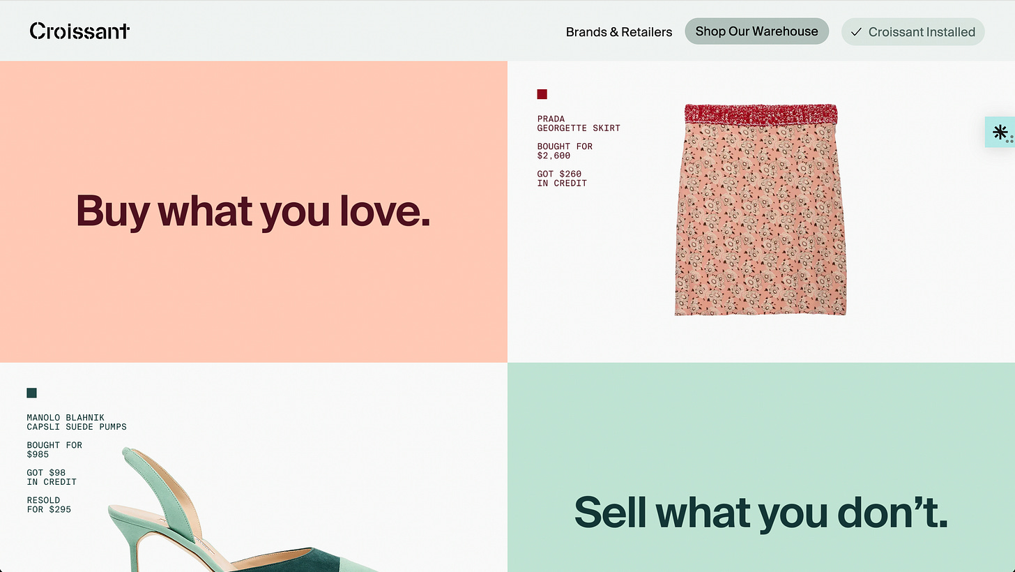 EXCLUSIVE: Croissant, the guaranteed-buybacks shopping tool we helped introduce in 2024, has added yet another channel for users to save on purchases. To quickly recap: The platform’s app and browser extension allow shoppers to see in advance the resale value of an item before buying it—a figure that is upheld by Croissant, which pays the commission out directly if and when the time comes to let a piece go. (Last year, Croissant added its long-awaited Warehouse of gently used bought-back pieces for second-hand shoppers to pick up at excellent prices.) Today, new-in shoppers will also earn a 10% credit for any item bought through Croissant (20% on their first purchase!) to spend across the platform’s extensive store network that includes Nordstrom, Revolve, Altuzarra, FRWD, Saks, By Far, the Croissant Warehouse itself, and more...Say I buy this Saint Laurent “Sac de Jour” for $5,100, not only do I see immediately that I can sell it back for $1,071, I also get $510 in credit (or $1,020 for my first purchase) to spend where I like. I’m absolutely factoring that $2,091 offset—over 40% of the product’s price—into my decision-making for such a high-value purchase.