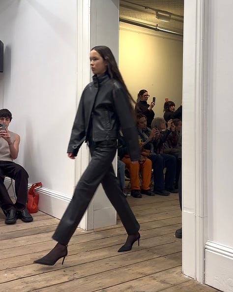 7p Khaite show — all bangers all the time. I’m sharing my Future Shoppers selects next send, so I’ll reserve my pre-spend thoughts until then. For now, what I will comment on is the show production (by Griffin Franzen, Prodject, and Vincent de Belleval) that blew everything else from the week out of the water. I only opened my mail this morning, but the physical invite was a circuit board with a single battery that when turned on spelled out KHAITE NEW YORK CITY. Next level.