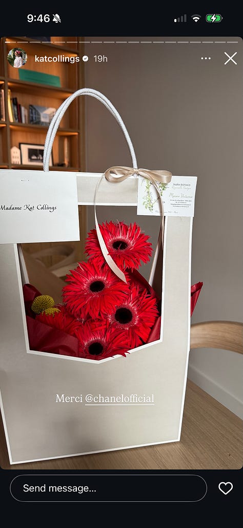 Chanel’s show invite was a bouquet of flowers arranged by Maison Vertumne. (Palette cleanser for the Epstein files gift recommendations floating around.)