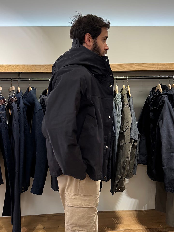 Giovanoli stocks a lot of my friend Lauren Frauenschuh’s family brand, Frauenschuh (she did knitwear for Dion Lee in New York before moving back to Austria to design the label…now it’s all brilliantly flattering slope uniforms with a few suede skirts and neoprene minis of questionable pragmatism in the mix). And I talked Nir into buying this unbelievable Ten C anorak whose Japanese knitted nylon/polyester micro-fiber was unlike anything previously known to my fingertips; like powdery silk satin to the touch! Menswear!