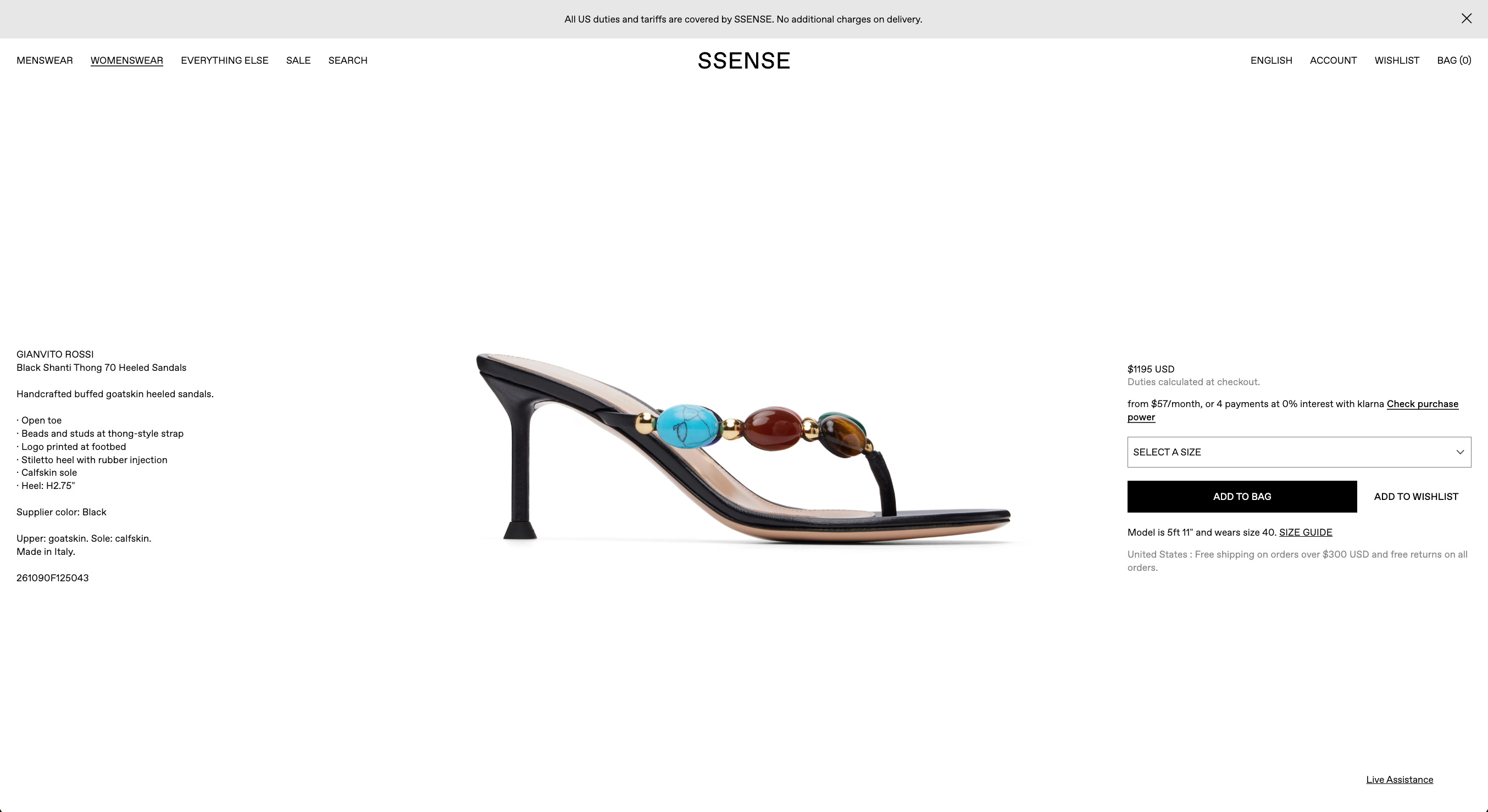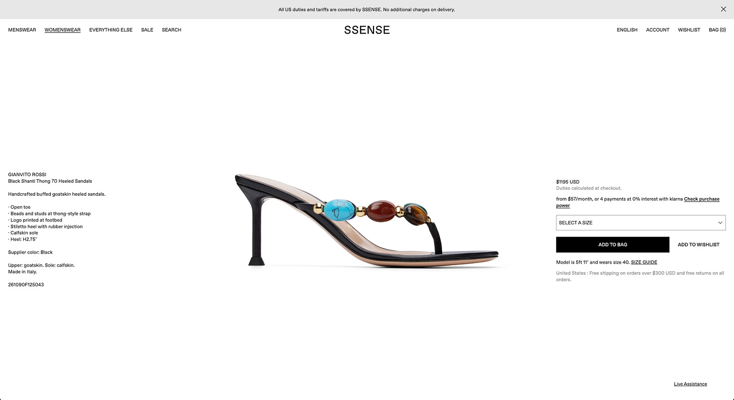These Gianvito Rossi beaded heels have stuck around on my wishlist for long enough (5+ months) to have achieved “The”-ness when I come across them now: The Gianvito sandals. They appeared again on SSENSE’s new-in pages, which I was scrolling with more intensity than usual, having learned of the site’s recent eligibility for credit back on the deeply relevant-to-me shopping app Croissant. I browse with the Croissant extension, which tells me I can earn 10% in shopping credit, so, $119 if I buy The Gianvito sandals that I can spend at SSENSE, Nordstrom, Saks, Altuzarra, By Far, etc. For those familiar with Croissant’s game, I’ll add that even though I’m getting credit, my purchase would still be up for a buyback—a guaranteed purchase price offered by Croissant itself should I ever choose to part with Them. (Though, after all this pining, that time would likely be: Never!)