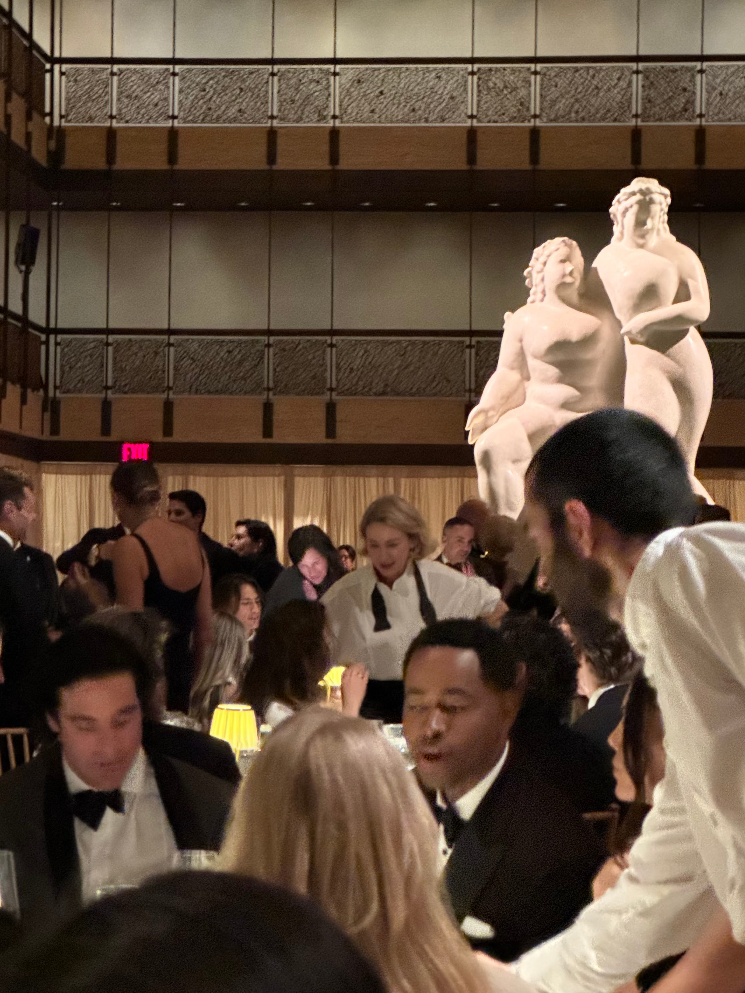 The doc itself was like a piece from the brand: visually rich, transportive, people-centric, and a sequin’s worth of affable corniness that made it identifiably him. The guy is a living legend, in large part because of the levity he brings to luxury. But the room was dripping in taste. The model Bianca Balti in a custom chevron sequin gown and pixie cut had her own gravitational pull, and a louche Naomi Watts leaning over a dinner table with an untied bowtie around her tux shirt collar was just…well nothing comes close.