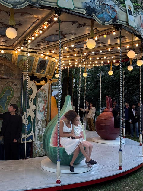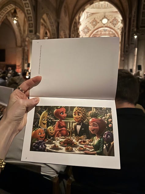 9:15p Prada Frames EVENING SESSION — a 3-parter including a poetry reading by Momtaza Mehri, AI lecture by Kate Crawford, and piano performance by Mahia Rani; the narrative explored by scholar and TIME100 “most influential in AI” was especially synapse-firing. When else has Fruit Love Island shown up in a Basilica? And how should we be thinking about “slopaganda” (amazing coinage) throughout this week? I’m not convinced finger-wagging is the straightest path forward… - LR