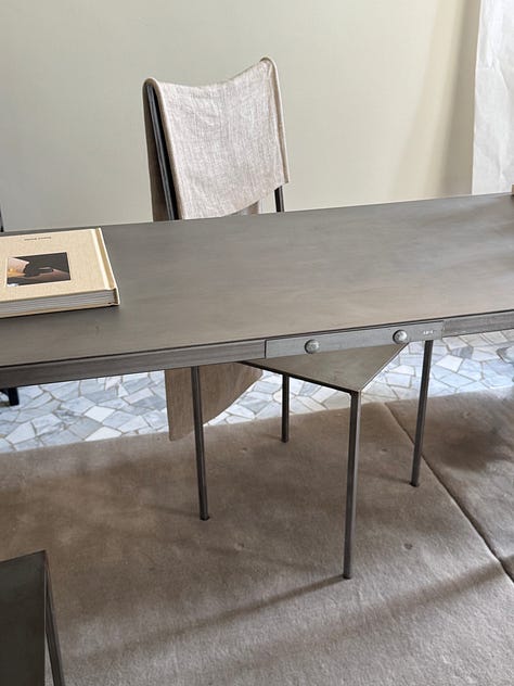 3p Convey Project — didn’t make it for press previews yesterday, but made a point of going today to see Joshi / Greene’s incredible rail system. The brand’s just a year old with a handful of residential (and a few commercial) projects under their belt, but infinite runway ahead of them…I’m now scheming an entire room in my renovation to accommodate it. Also major from the fair was Rooms Studio, a Georgian design duo and favorite from last year who’ve put out a steel chair with a burlap slip that I’d love to see around my dining table. - LR