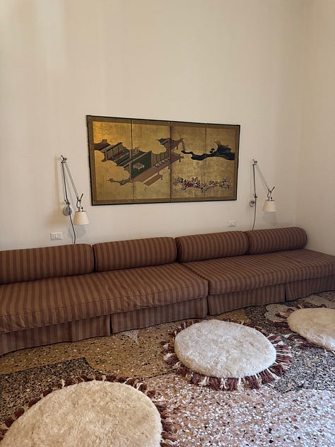 4p Casa Milana with BENI and Laguna~B at Mario Milana and Gabriella Campagna’s private residence — a highlight seeing this gorgeous apartment by former Brooklynites (increases the envy and imagination 10x), a labyrinth of generous rooms demonstrating the dynamism of Beni Rugs’ newest terrazzo collection. - LR + XD